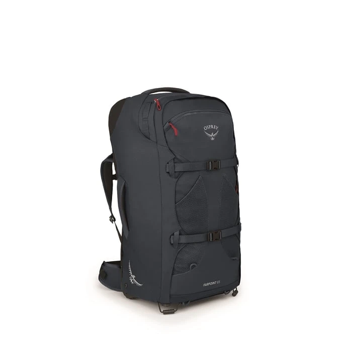 De Farpoint Wheels 65 van het merk Osprey is de combinatie van een backpack en een koffer. Het interieur van de backpack is voorzien van twee compressiebanden en twee organizer mesh-vakken. De banden van de backpack zijn weg te werken achter een oprolbaar achterpaneel. Door de gewatteerde schouderbanden en rugpaneel is de backpack comfortabel te dragen. Ook kun je de backpack meetrekken dankzij de meertraps trekstang en de twee soepele wielen. Kortom de ideale backpack om mee op reis te gaan.