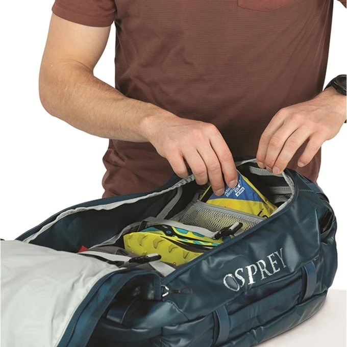 De Transporter 40 is een stoere, kwalitatieve handbagage reistas van het merk Osprey. De reistas is gemaakt van duurzame en hoogwaardige materialen en is waterbestendig. De tas opent middels een u-vormige rits, zodat alle inhoud erg toegankelijk is. De lichtgewicht duffel is gemaakt van sterk nylon. Dankzij de borstband en rugzakbanden kan de tas comfortabel gedragen worden. Het interieur van de tas is georganiseerd, zodat alles geordend en overzichtelijk mee te nemen is. Kortom, een echte allround reistas die duurzaam en comfortabel is. Perfect voor om mee te nemen als handbagage.
